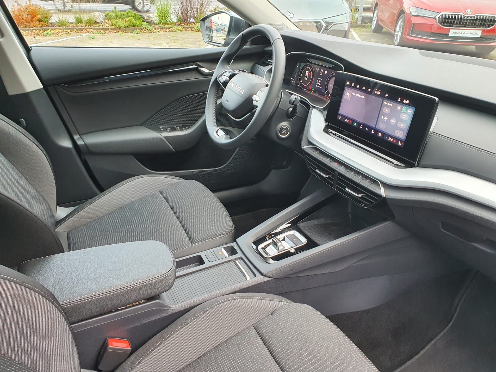 × Regulējams elkoņu balsts starp priekšējiem sēdekļiem ar sīklietu novietni, 2 USB-C rozetes aizmugurē (tikai uzladei), 1 USB-C rozete pie salona atpakaļskata spoguļa (tikai uzlādei)